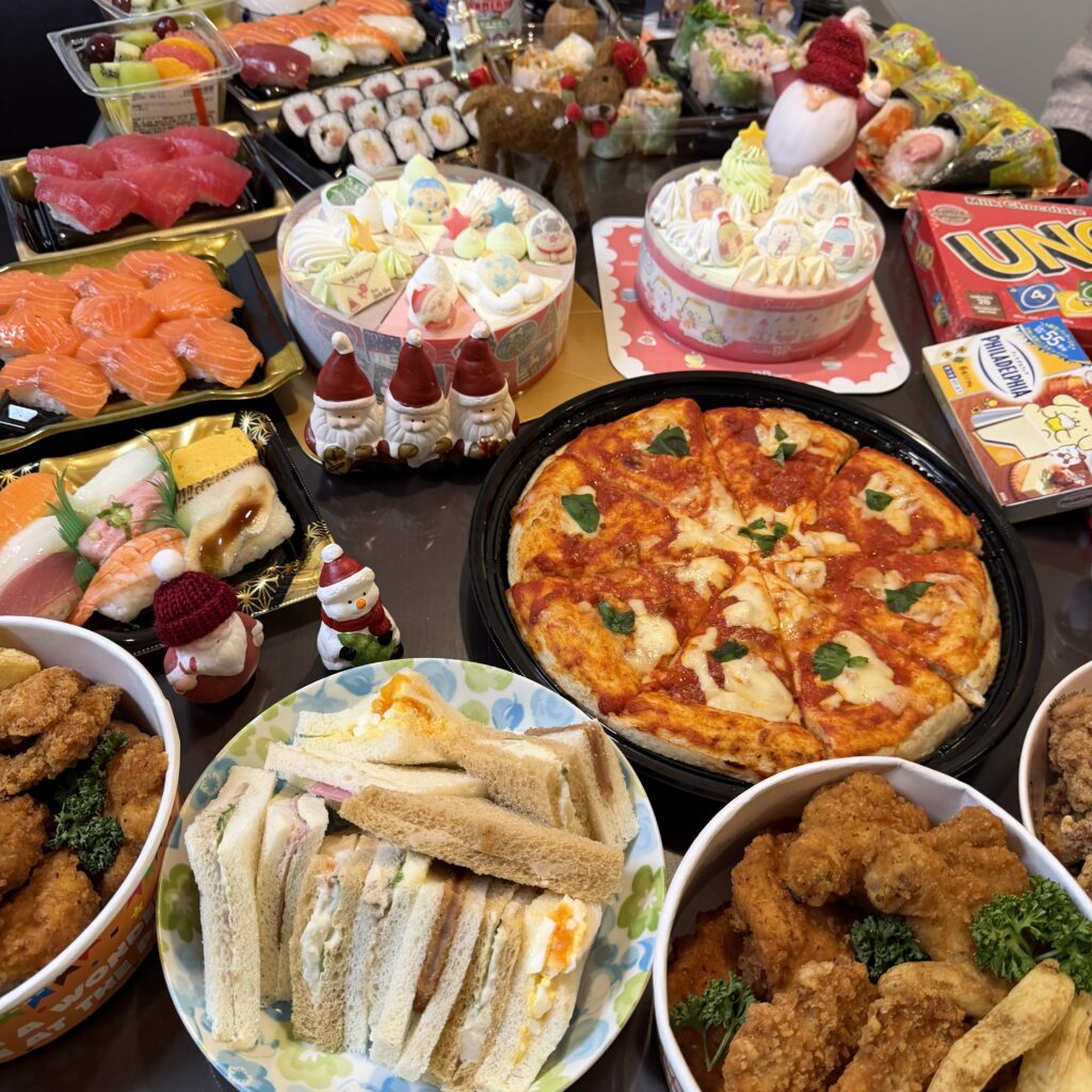 お寿司、ピザ、唐揚げ、サンドイッチなど