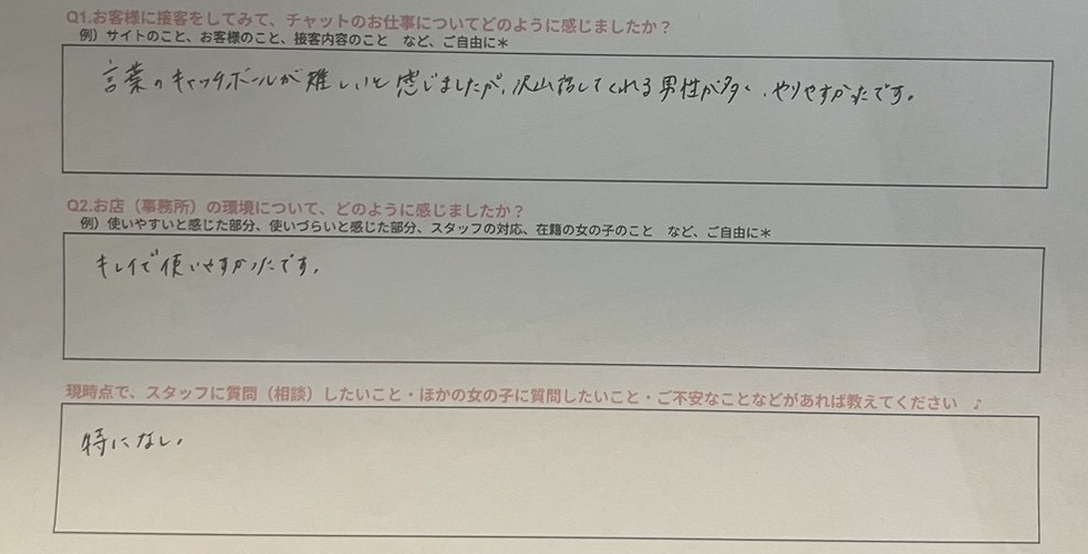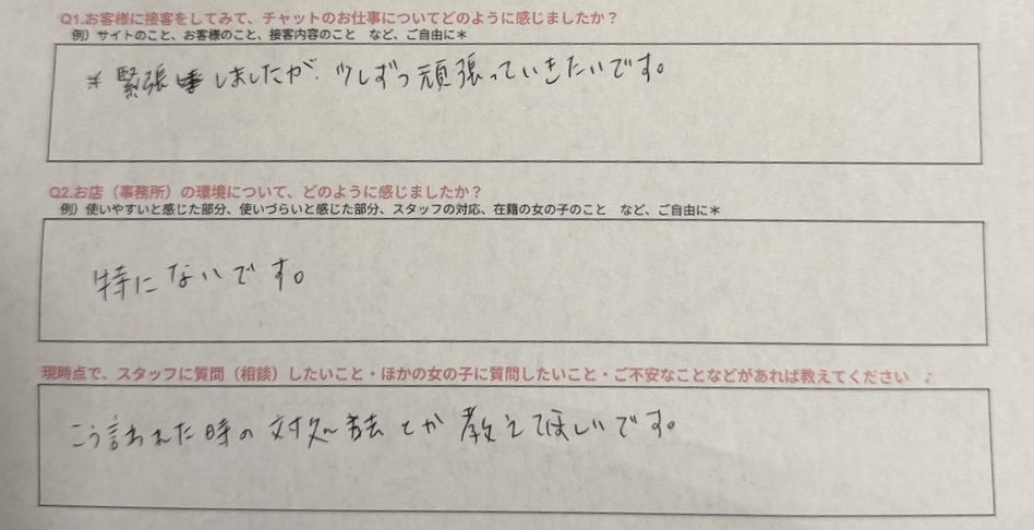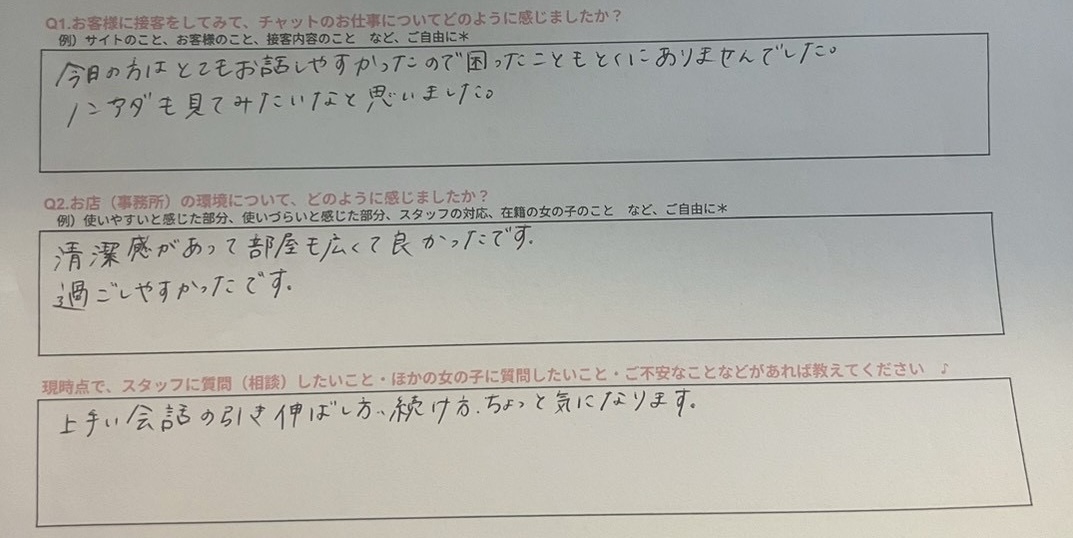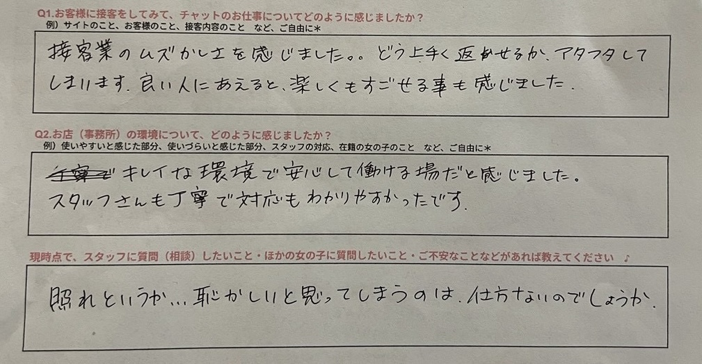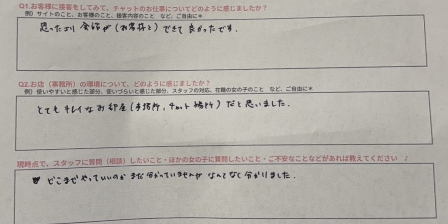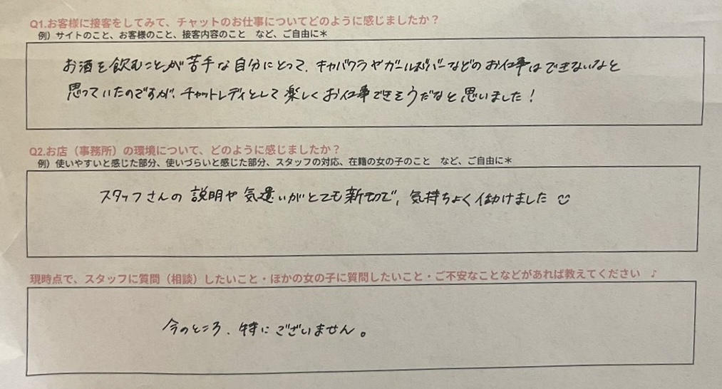 体験入店アンケート📝